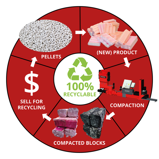 With a RUNI compactor, you can move your EPP waste into the recycling stream and save money on storage, transportation, and fees for disposing of your waste. Furthermore, you can sell your compacted EPP blocks to recyclers and Turn your waste into value!