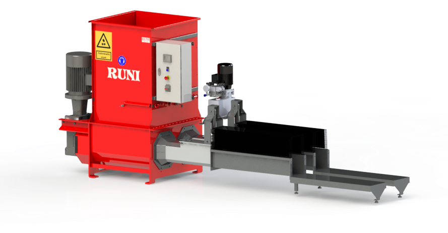 The RUNI SK240 screw compactor is the second largest in the RUNI range. It is capable of compacting a wide variety of materials, with capacity and output depending on the specific input.